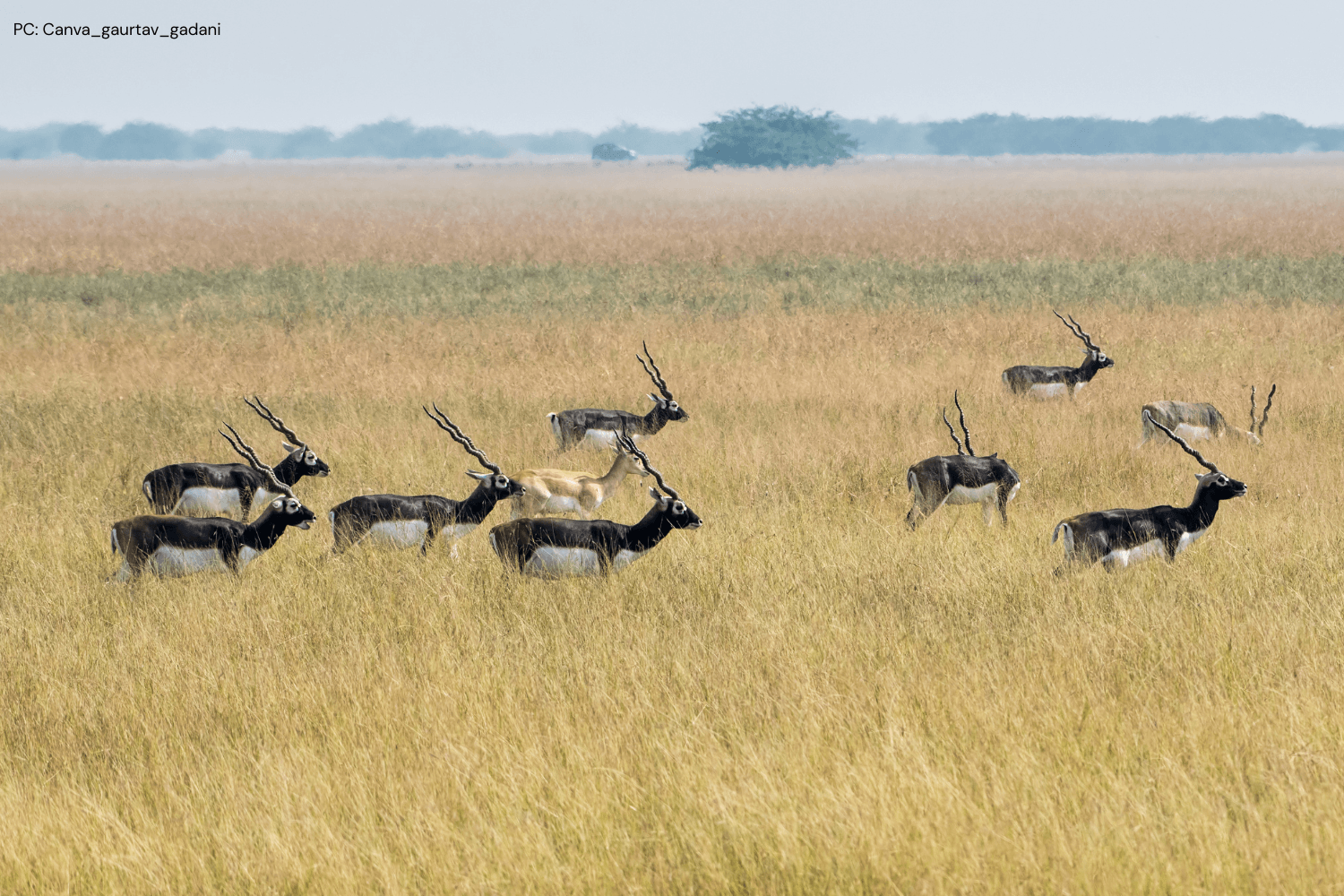 It’s time to bid the big cats adieu and head to Velavadar National Park. We will travel almost six hours from Gir National Park to Velavadar and check-in at Blackbuck Lodge. Created for the conservation of the Blackbuck, Velavadar is a small but stunning grassland ecosystem, home to many grassland birds and animals. Indian Wolf and Striped Hyena are also here in decent numbers, and make for interesting sightings